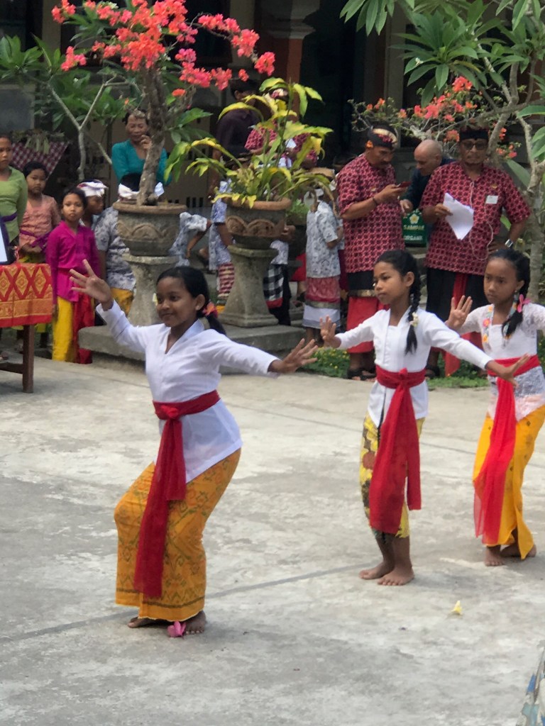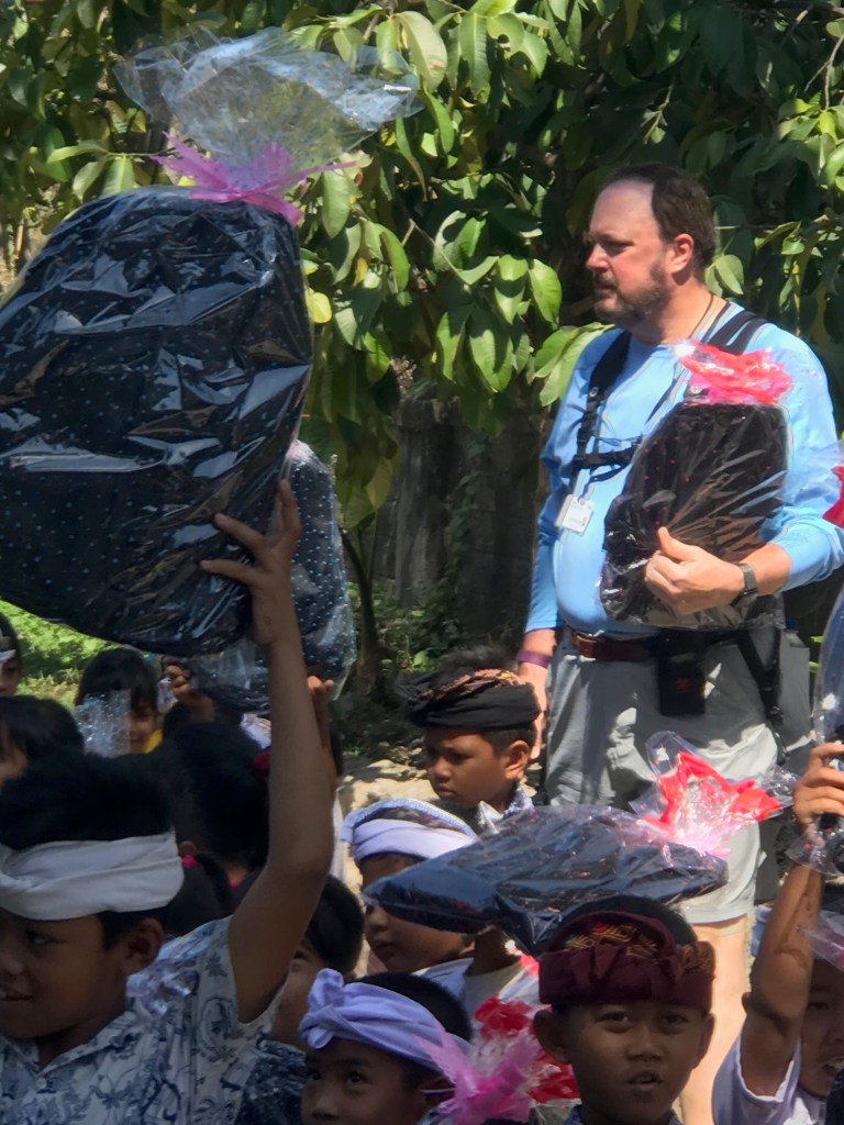 Our first expedition stop today is a children’s elementary school. The children greeted us the with bowed heads and hands in prayer pose and then put a Frangipani flower behind each woman’s ear.