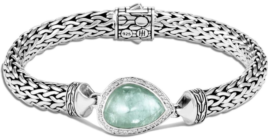 Jim treated me to a new bracelet for my upcoming birthday. It’s a beautiful silver chain link bracelet with a Grandidierite stone & Diamonds.