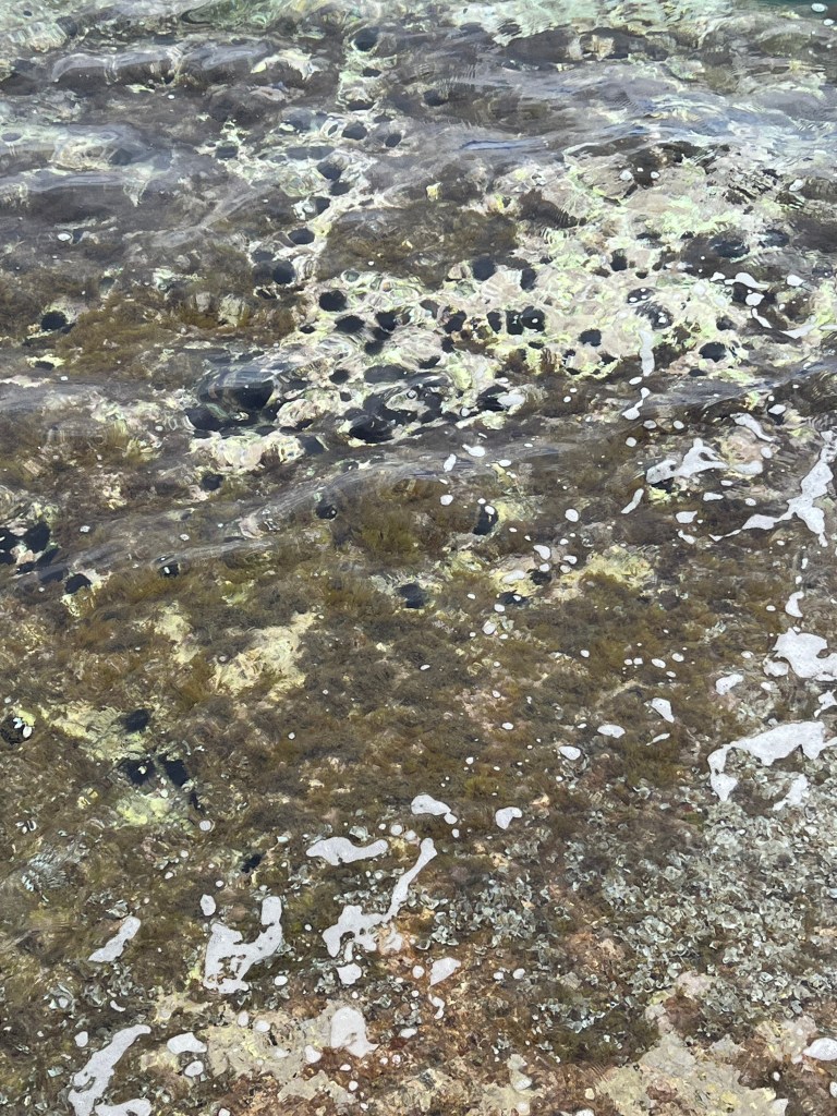 The seas are crystal clear and you can gaze down at fish and tons of sea urchins.